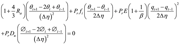 and M = 0 with Rajagopal et al. [16] , Kuo [17] , Ishak et al. [18] , K. Jafar [8] . It is observed that this numerical solution in excellent agreement with the results previous obtained values as shown in Table 1. Finally, Tables 2-4 shows comparison between numerical solution by using (FDM) and the analytical solution using (DTM). It is observed that this approximate numerical solution is in excellent agreement with the results of the analytical solution of by using (DTM).