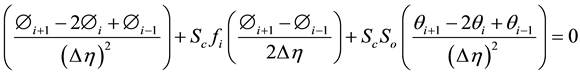Now, we can write Equations (37)-(41) in the following finite difference form