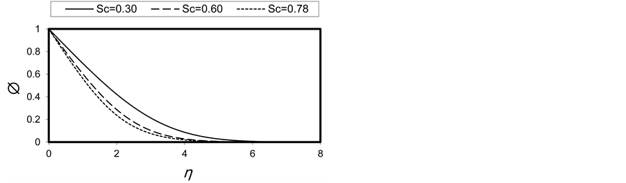 and Pr. Figures 16-18 represent the concentration profiles for the flow parameters. It is noted that concentration increases with an increases S0, while it decrease with the increases