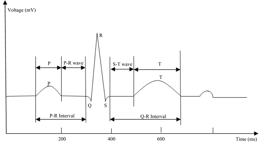 Resting potential and action potential in medicine are known as polarization and depolarization. A classic electrocardiographic includes not only P-waves produced by atria depolarization, QRS-waves produced by ven- tricular depolarization, T-waves produced by rapid ventricular repolarization and so on. At the moment of atria depolarization, the beating heart could produce biological signals of P-waves. QRS-waves can also be produced by ventricular depolarization. T-waves, PR segment, ST segment, PR interval and ST interval can appear at the time of rapid ventricular repolarization. Classic ECG can accurately reflect the changes of biological signals and provide a reference for medical treatment [20] - [23] . Every band corresponds to a kind of mechanical moment of ventricular or atria as shown in Table 2.