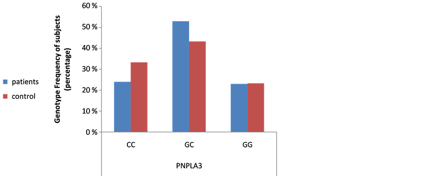 Figure 1. Comparison between PNPLA3 rs738409 SNP in NAFLD patients and controls.