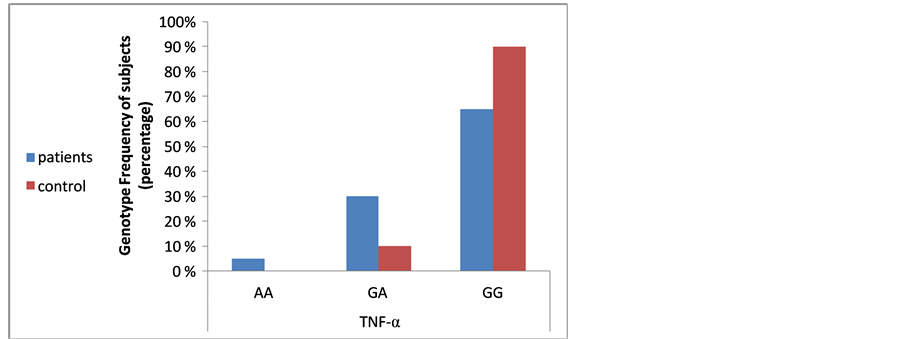 Figure 2. Comparison between TNF-α G238A SNP in NAFLD patients and controls.