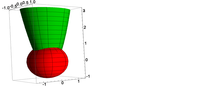 are verifiable in Figure 4(a) and Figure 5(a) shows the intersection between the surface (6.3) and sphere (6.2), Figure 4(b) and Figure 5(b) gives the intersection of (6.3), (6.2) with