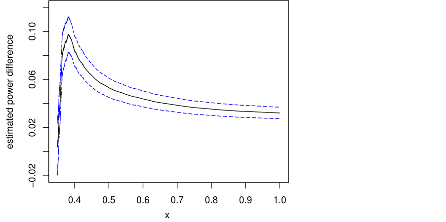 Figure 7. Estimated difference in powers for Shapiro-Wilk and kernel-based tests given that