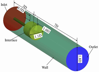 To analyze the wall effect in restricted channel, two conditions that the diameters of computational domain are 1.8 and 5.0 times diameter of propeller DTMB 4119 are set. The inlet is the constant velocity, advance speed VA. The outlet is the second boundary condition. The cylinder surface is the non-slip wall. The surface of blades and shaft are the non-slip and generated wall. The boundary conditions of computational domain are shown in Figure 3.
