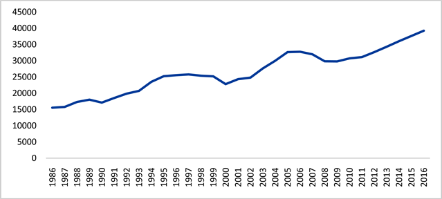 Figure 1 shows the trend of the number of inbound tourists. The tendency of tourist arrivals in the United Kingdom is an upward trend throughout all these years. There were significant decreases only in 1991, 2001 and 2008-2009. Why these years have a downward trend? It may be influenced by several global issues, the collapse of the Soviet Union in 1991, the September 11 attack in 2001 and the global financial crisis in 2008. However, there are continuous terrorist attacks, no matter big or small, happening in both the United Kingdom and the European continent from 1986 to 2017. Do these incidents have any impacts on tourism in the United Kingdom? This paper will carry out further research on this problem.