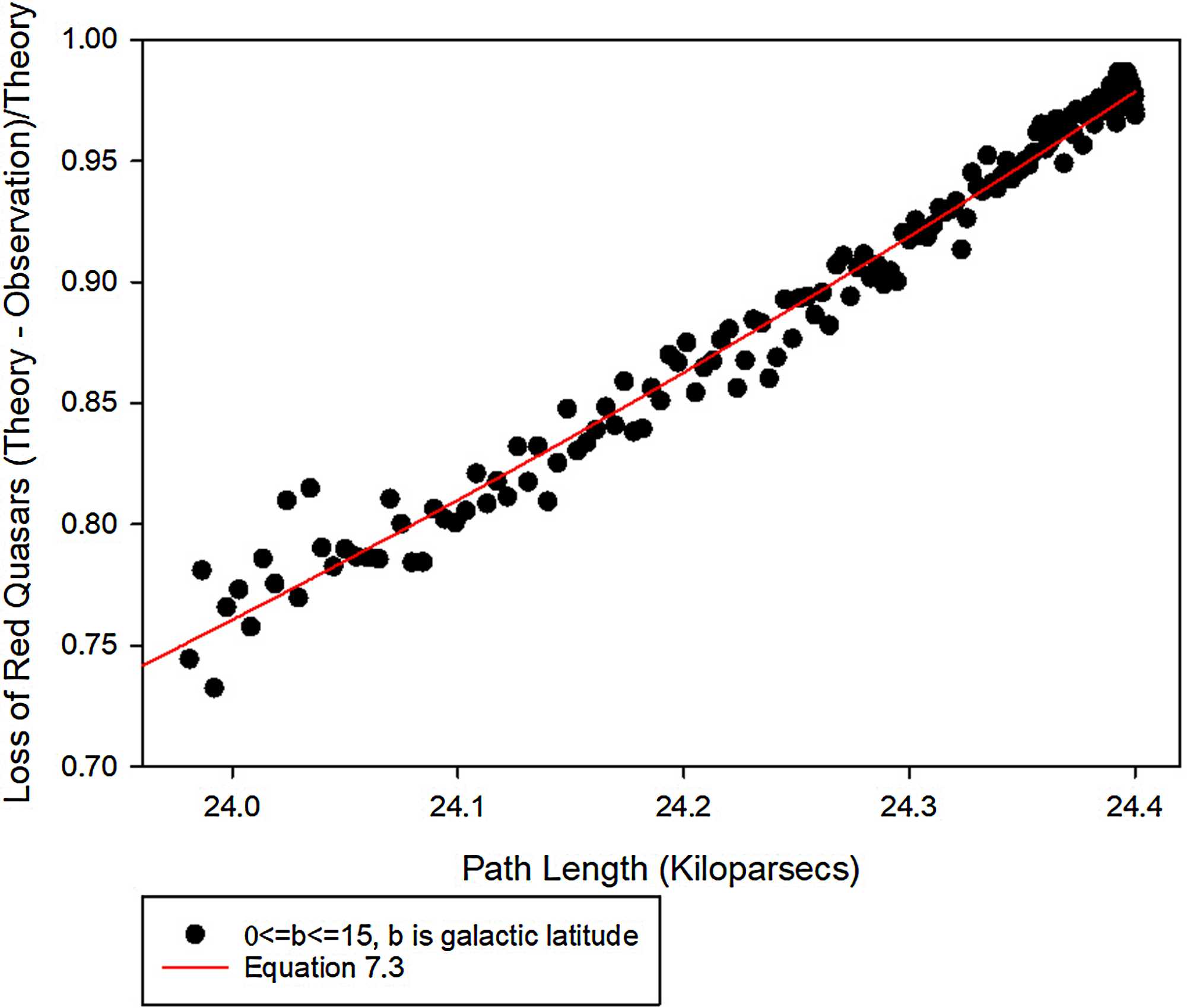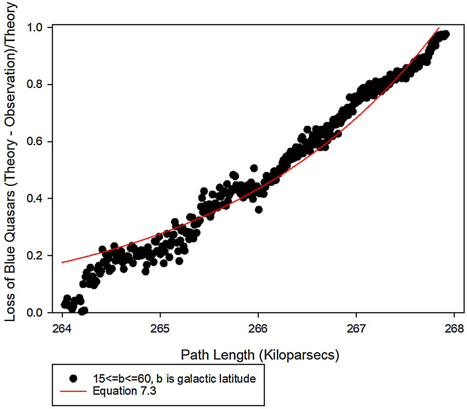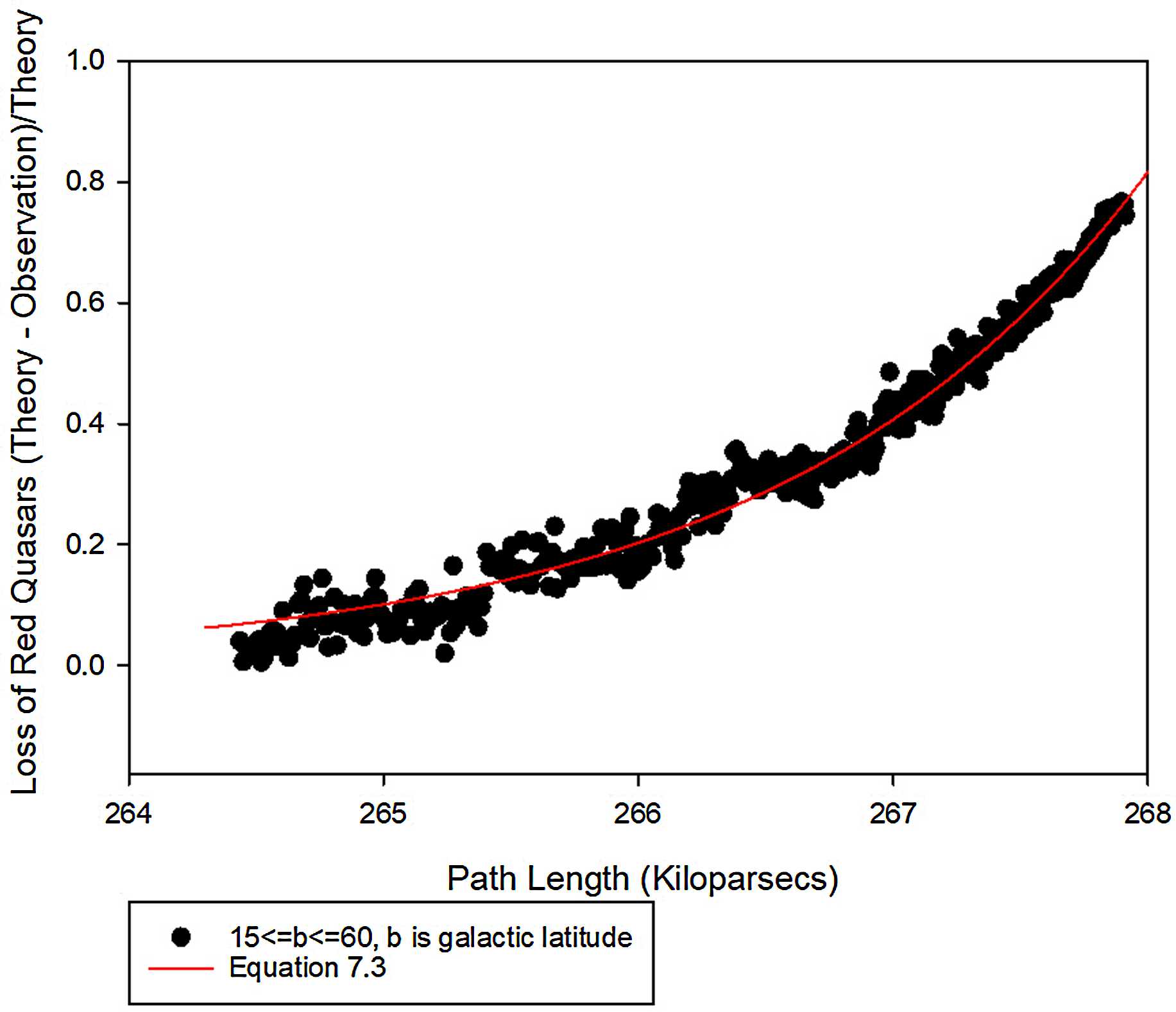 Our approach to accomplish our three primary objectives is to first develop a theoretical expression, which allows us to compute the expected isotropic distribution of quasars. We then compare the theoretical isotropic distributions with observations of the distribution of quasars on the celestial sphere, which are highly anisotropic. We conclude that the discrepancy between theory and observation is caused by the extinction of quasar light. We then investigate a number of circumstances, which could possibly cause the extinction.