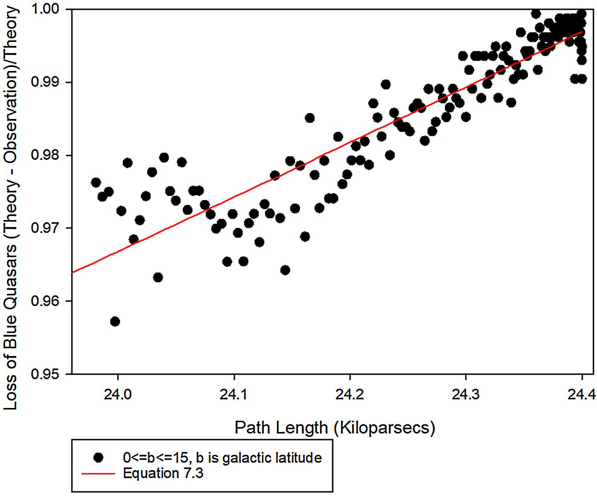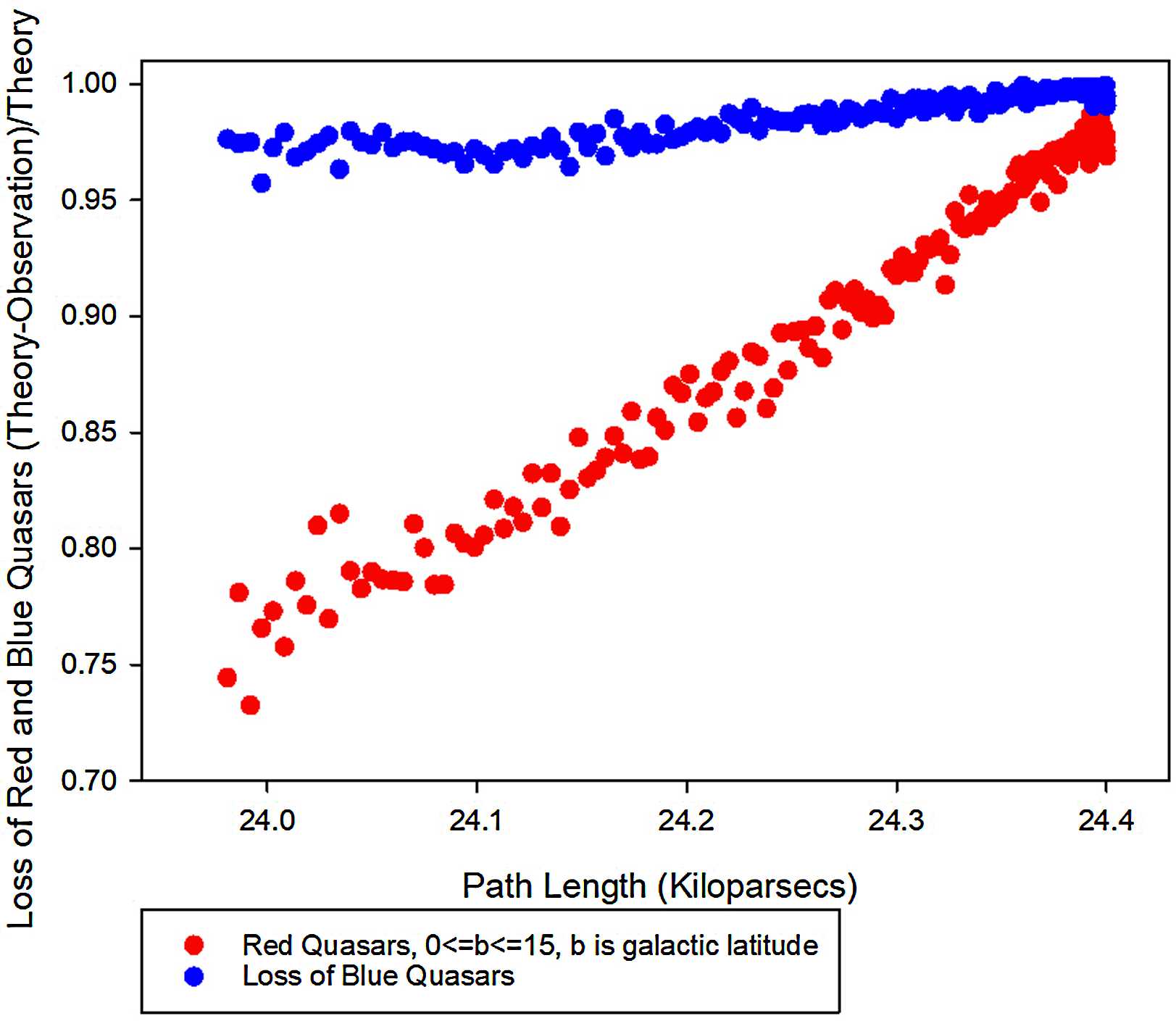 Extinction in the Milky Way has been studied extensively by Green et al. [2]. Previously, Schlegel et al. [3] created two-dimensional maps of reddening due to dust. Their work was followed by a number of authors, who improved the high galactic latitude portion, namely: York et al. [4], Schlafly et al. [5], Peek & Graves [6], Jones et al. [7], Schlafly & Finkbeiner [8], Peek & Schiminovich [9], Yuan et al. [10] and Wang & Jiang [11]. In addition Pelgrims [12] has investigated the influence of Galactic dust on the polarization of quasar radiation. The extinction considered by these authors is caused by Galactic dust, which is always accompanied by reddening. Below we show that the observed extinction of quasar light is not caused by dust.