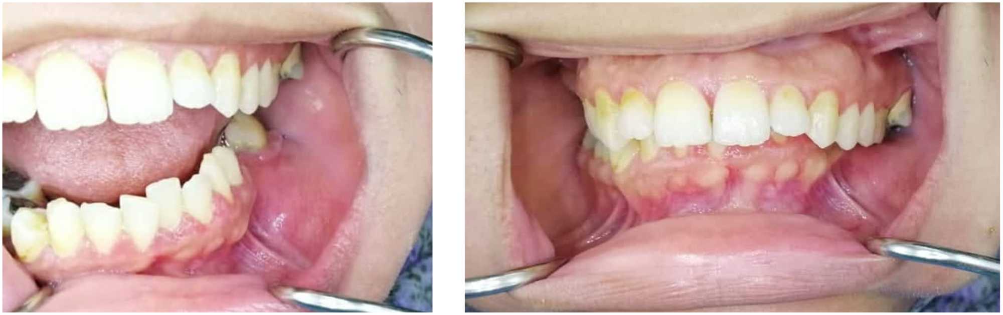 Figure 1. Preoperative intraoral views showing expansion and obliteration of buccal vestibule.