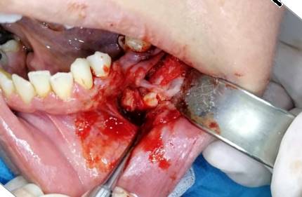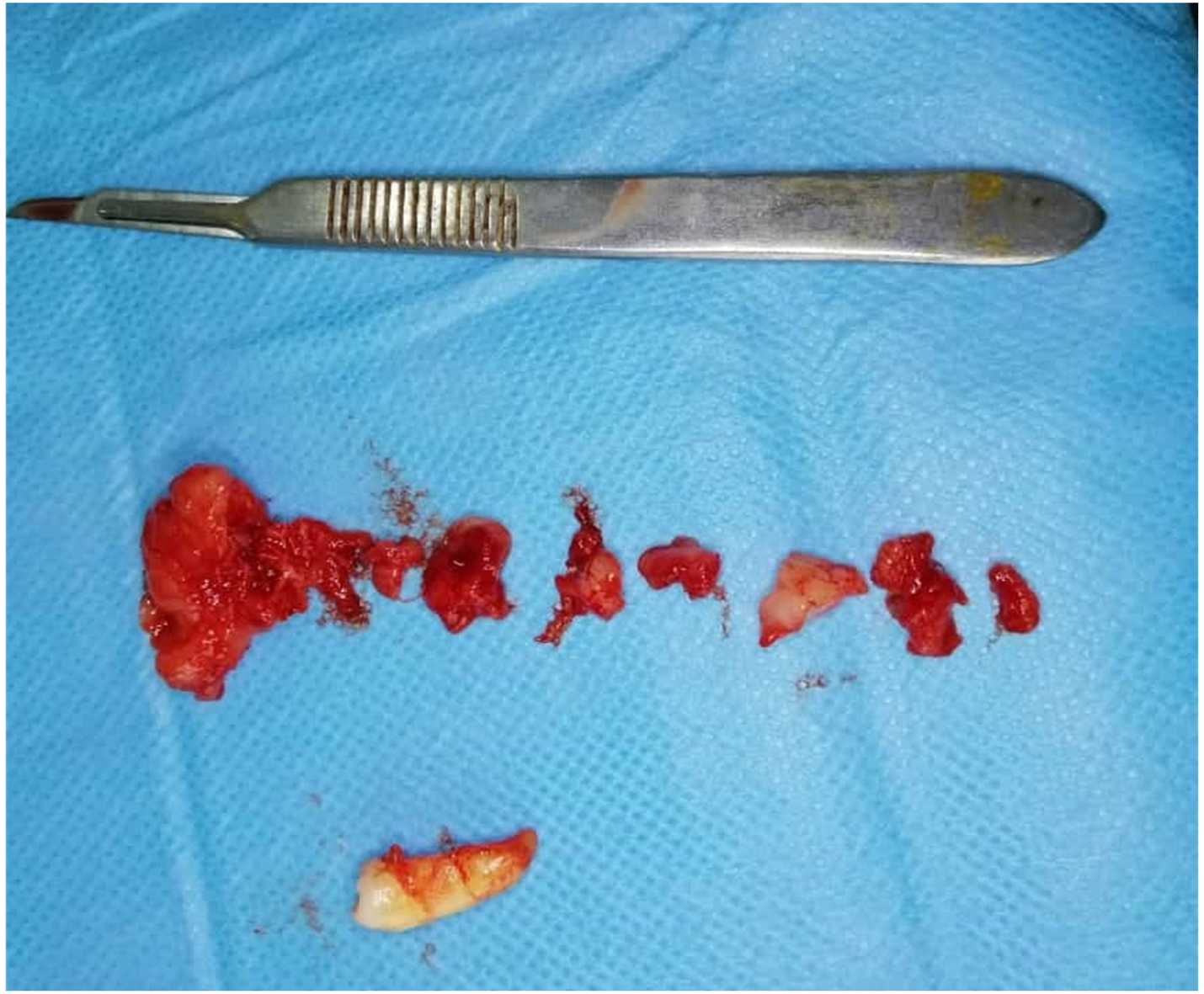 Figure 4. Excision of the lesion mass, including the impacted premolar.