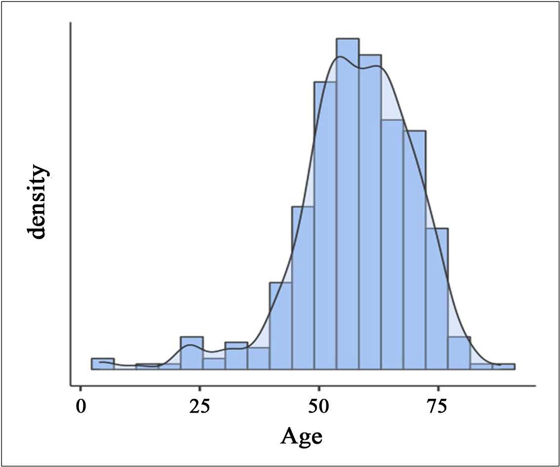 This study screened 367 participants for ophthalmological disorders including glaucoma. The mean age of the sample was 57.8 years, with a standard deviation of 12.2, and median age is 59 years, minimum age of 4 and a maximum of 88 years, 23 persons (6.3%) are younger than 40 years compared to 343 persons (93.7) are forty years and more (Table 1, Figure 1).