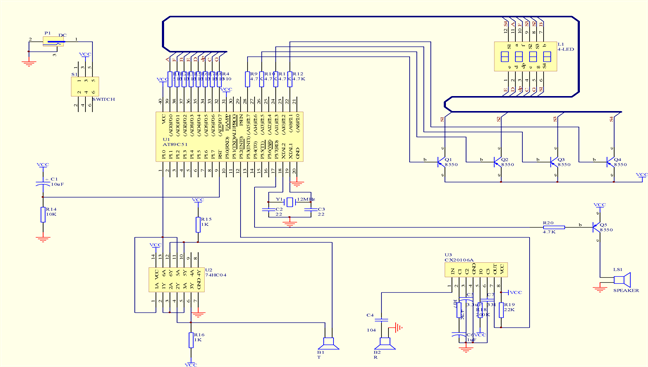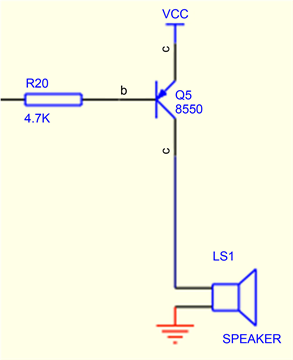 According to the requirements of the project, the system just needs to provide an alarm audio. So, the PNP transistors should be used in driving the speaker. However, the frequency of the audio signal is controlled by the MCU. It has been described that the frequency of the signal will be rise as the distance is close. The circuit design is shown as Figure 8.