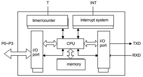 As the Figure 10 shows, the AT89C51 consists of the following components: central processing unit (CPU), oscillation circuit, the internal bus, program memory and data memory, timer/counter, I/O port, serial port and interrupt system.
