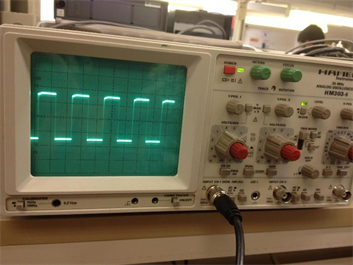 The transmitter was enabled and tested on the oscilloscope shown in Figure 16 to get the desired frequency.