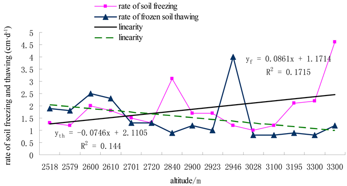 Figure 2. Spatial variation features of the rate of soil freezing and thawing with altitude in the Dayekou Basin of the Qilian Mountains.