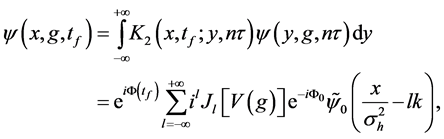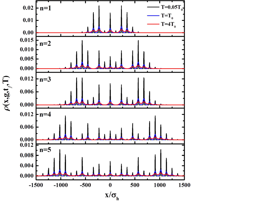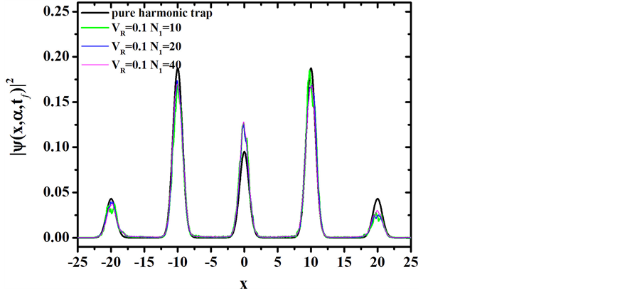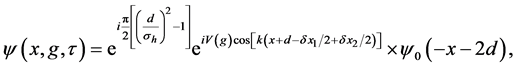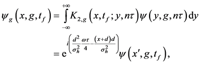 Except the phase difference between Equation (24) and Equation (27), a constant difference d is found in the centre position of each sub-wave packets induced by the gravity field. In the case of “no-overlap” condition (Equation (11)), which is satisfied when the width of the initial wave packet is much larger than the interwell distance of the KD optical lattice (