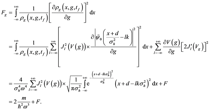 If the gravity field is witched on in the last KD pulse, the density profile at final time is described by Equation (38). In this case, there is a further contribution to the Fisher Equation (42) from the shift on the center of sub-wave packets and we have