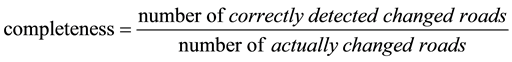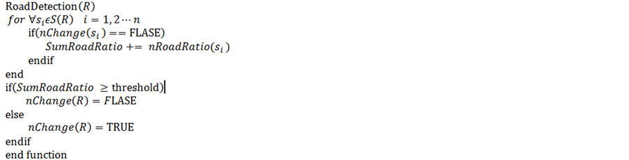 (nRoadRatio) is larger than a certain threshold (set as 0.6 in the experiment), it is considered to have not changed; otherwise, considered to have changed.