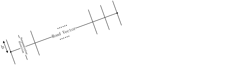 As for unchanged vector unit, the b calculated as the steps described in Section 2.3.2 is as half-width for road template, and direction of vector as template direction. Define one of vector’s end points as base point, and set the average of the gray values along the perpendicular direction of vector as the corresponding template gray value. Figure 4 shows the template generation method.