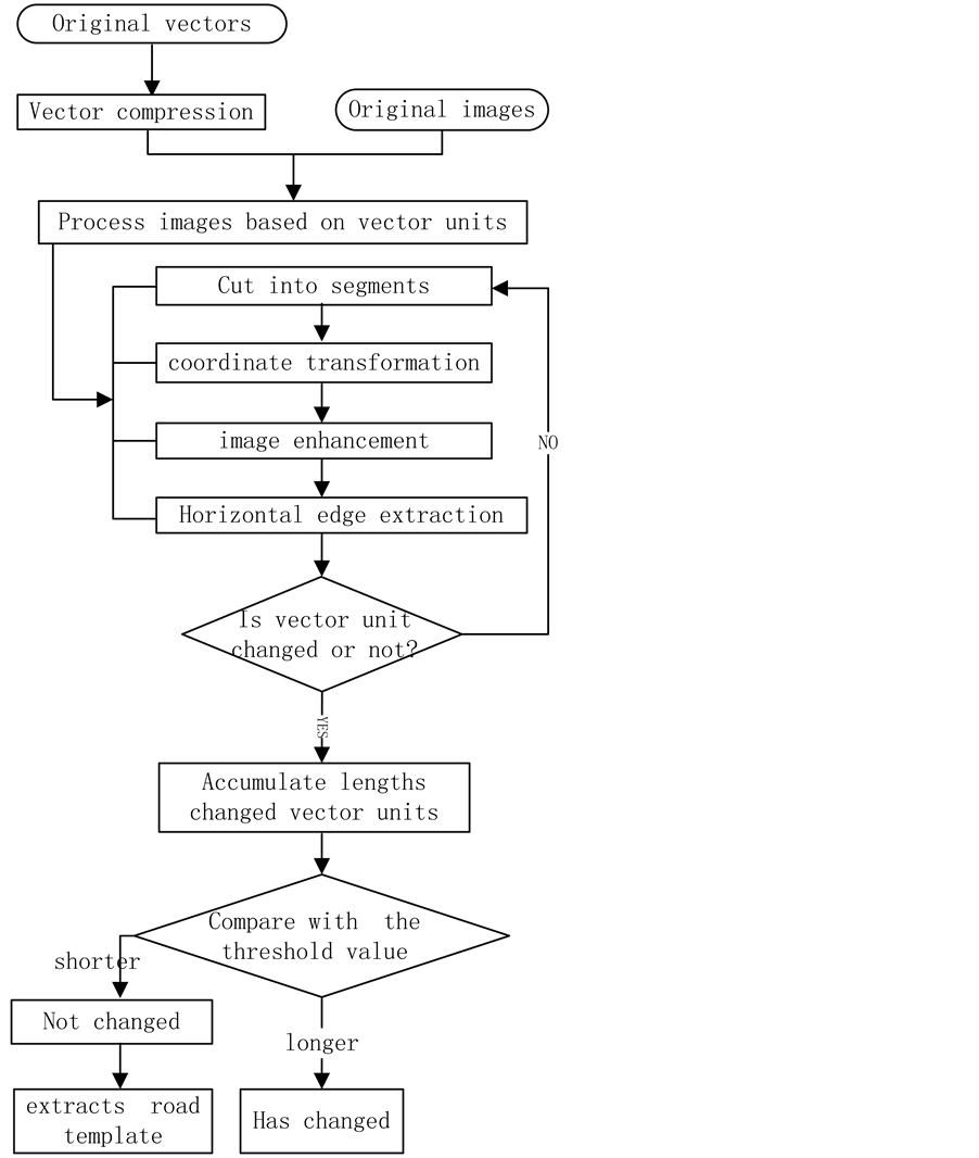 This section introduces the detection algorithm for old vectors based on new high resolution remote sensing image. The specific process flow chart is shown as followed in Figure 1.