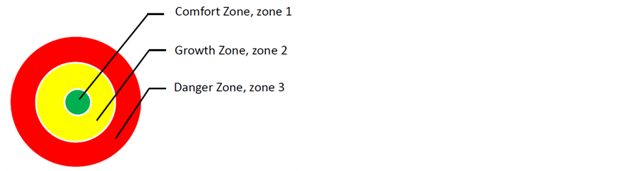 Between these two zones lies the “growth” zone, which is related to the “zone of proximal development”. Remaining in zone one feels safe to the learner but, for many, this is unlikely to result in the acquisition of new knowledge or skills; moving directly to zone three, on the other hand, is also unlikely to result in new knowledge or skills, as the flight, fight or freeze reaction induced by this zone is not conducive to learning.