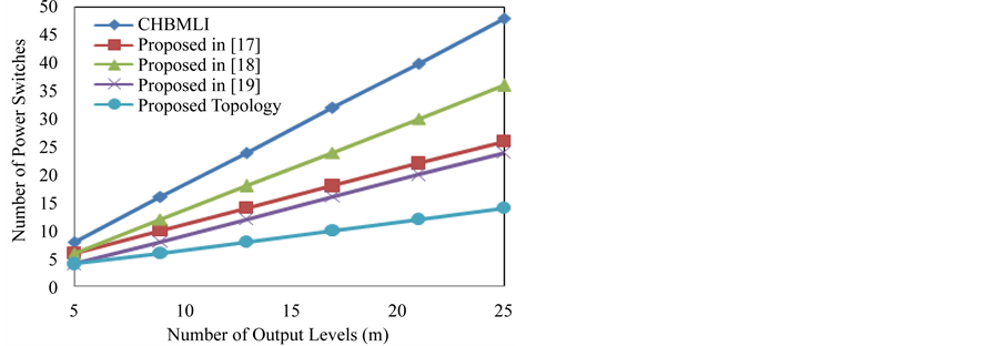 structure presented in [17] - [19] , CHBMLI for m-level are given in Table 2. Moreover, to elucidate the comparison, the number of components required for seven-level output voltage is given in Table 3. It is concluded that, the component comparison of the proposed topology and the other recent topologies, indicates the superiority of the proposed inverter.