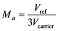 where Vref is the amplitude of the sinusoidal signal, and Vcarrier is the amplitude of the triangular signal. The level of the inverter output voltage changes with the modulation index.