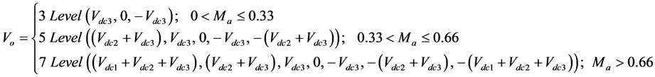 The Equation (9) gives the information about the level of the inverter based on the value of the modulation index (Ma).