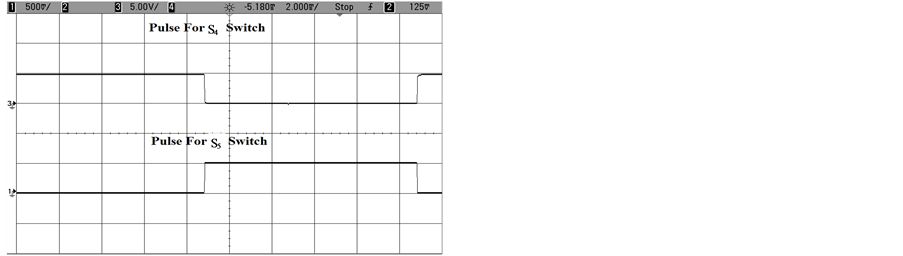 Figure 10. Experimental Pulse pattern from novel switching scheme for Proposed Inverter (a) Pulse for Switch S1, S2 and S3; (b) Pulse for Switch S4 and S5. (x axis: 2.22 ms/div, y axis: 5 V/div).