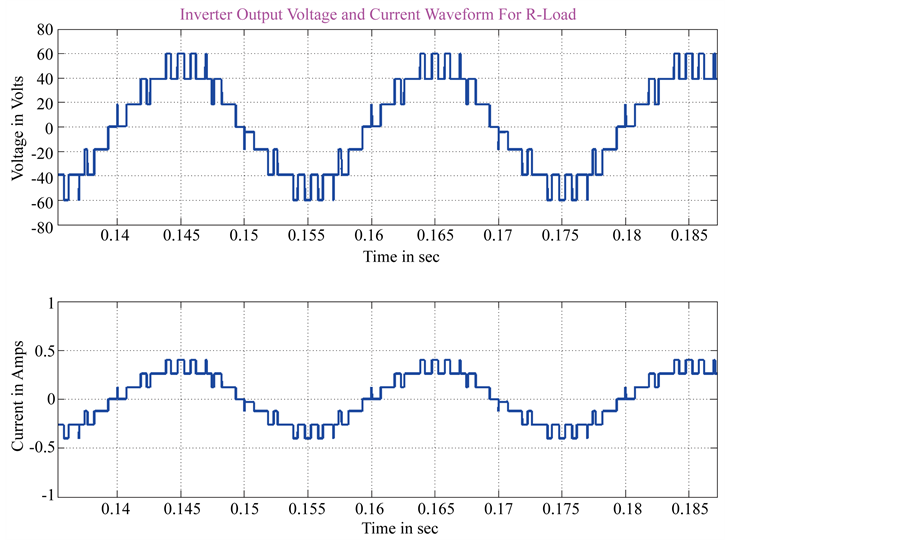 Figure 13. Simulated inverter output voltage and current waveform for R load.