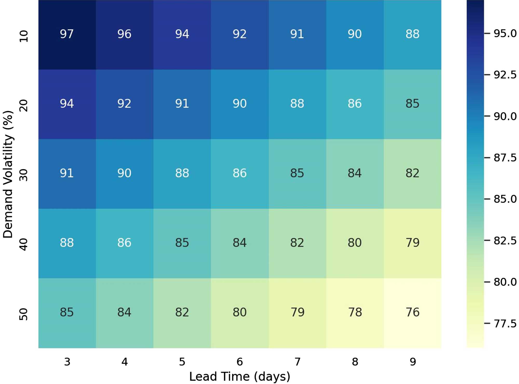 Figure 8. Heatmap of fulfillment rate sensitivity to lead time and demand variability.