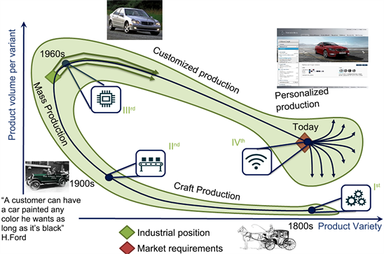 Figure 2. Paradigm shifts in manufacturing over the past centuries (adapted from the study of Koren in 2010 [4] ).
