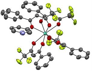 Suitable single crystals for X-ray structure analysis were easily obtained for all complexes. Since, europium (III) complexes are air stable, preparation of crystals is has been easy. All four complexes were dissolved in suitable solvents and left to slow evaporation at room temperature that resulted in crystals of complex 3a, 3b, 3c and 3d.