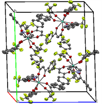 The europium (III) ions of four complexes are coordinated by a distorted octahedral arrangement of eight oxygen atoms from four chelating β-diketone ligands (Figure 10). The average Eu1-O bond lengths are moderately normal, and these values are 2.384Å for 3a, 2.40 Å for 3b, 2.39Å for 3c and 2.38Å for 3d, respectively (Tables 2-5). The bond distances and bond angles are in good agreement with those reported for other analogous Eu-β-diketone complexes [33].