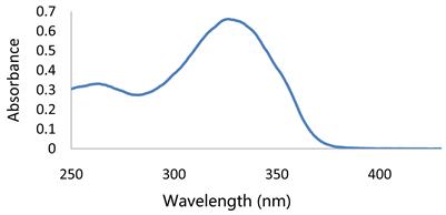 The fluorescence spectrum was measured in solution and solid state as well. The solution state fluorescence measurements were carried out in dichloromethane solution (1 × 10−3 mol/L). The corresponding absorption and emission spectrum of 3a, 3b, 3c and 3d were shown below (Figures 1-8, respectively). Complexes 3a, 3b, 3c and 3d exhibited absorption maxima at 327, 330, 326 and 313 nm, respectively. These strong absorption bands were assigned to the π-π* enol absorptions of the β-diketone ligand.