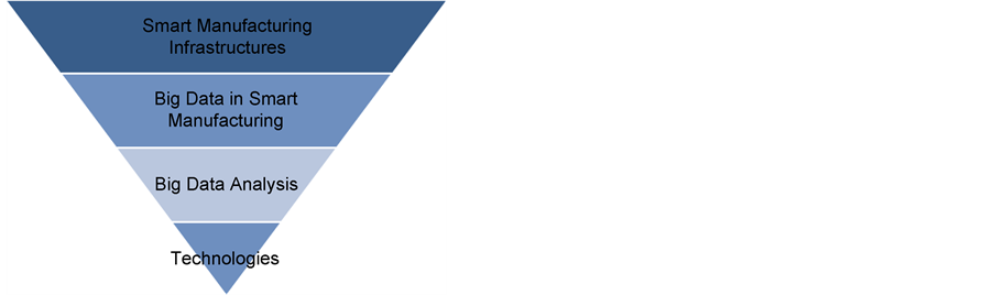 Figure 2 shows the structure of this chapter. 1st, the infrastructures of Smart Manufacturing systems including requirements and examples, to get an overview and a better understanding of Smart Manufacturing ecosystems, will be described. 2nd, Big Data in Smart Manufacturing environments will be presented, to show which sort of data is available in these systems. 3rd, a SotA of Big Data analysis methodologies and approaches will be presented; and finally (4th), will be presented a SotA of technologies, which are already available or under development.