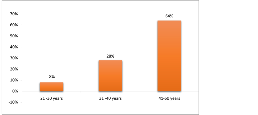 Figure 1. Age of the women. The average age of the women was 41 years ± 64 with extremes of 21 years and 50 years.