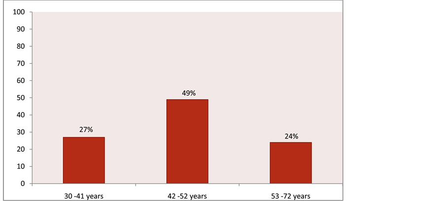 Figure 2. Age of the men. The average age of the men was 46.5 years ± 7.3 with extremes of 30 years and 72 years.