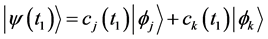 Let us underline the difference between the state vector at time t when no time dependent perturbation is applied and the state vector at time t resulting from the application of