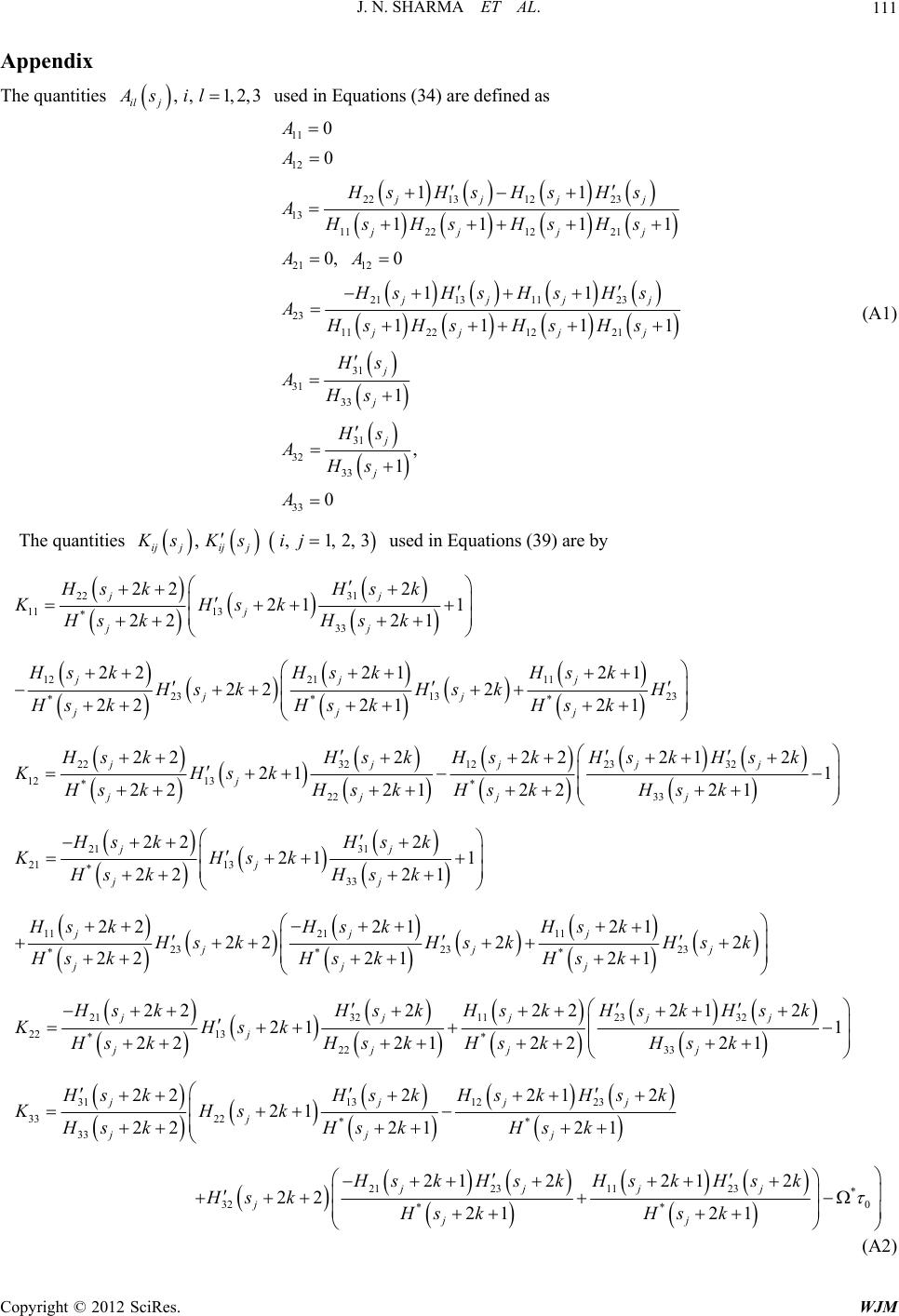 J. N. SHARMA ET AL. Copyright © 2012 SciRes. WJM 112 and 2211 23 13 13 ** 2123 1123 23 ** 31 32 31 32 33 33 2122 2 2 212 2 21 2222 21 21 22 , 21 21 jj j jj jjj jj jj jj j j skHsk Hsk KHsk Hs kHs k skHskHsk Hsk KHs kHsk Hs kHsk KK Hs kHsk (A3)