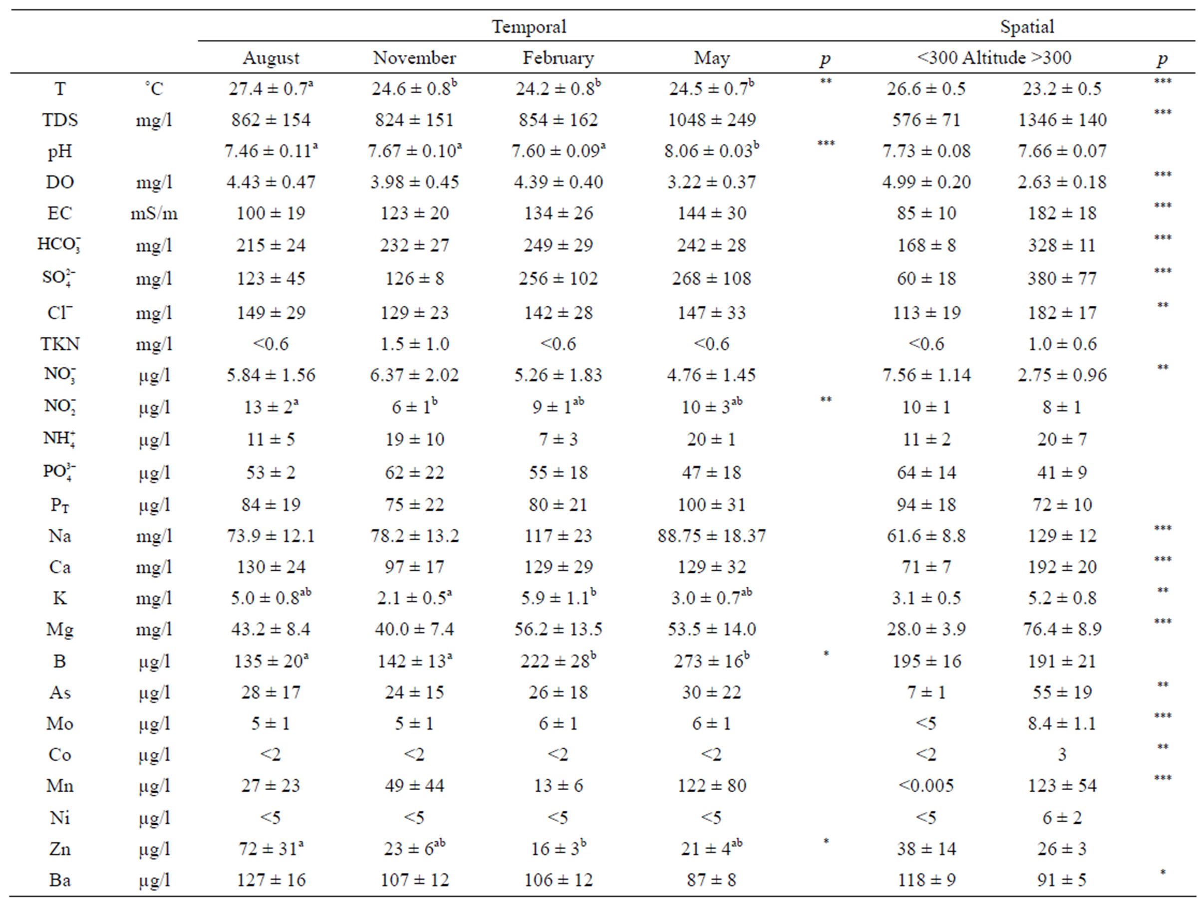 Table 2. Temporal and spatial water quality variation. a,bDifferent letters indicate significant differences: *p < 0.05; **p < 0.005; ***p < 0.001.