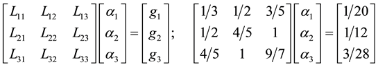 It is clear from Equation (12) that the chosen basis function meets the boundary conditions and can be considered as a solution to the problem. Substituting Equation (12) into Equation (6), the left-hand side elements of Equation (7), which are the elements of the matrix