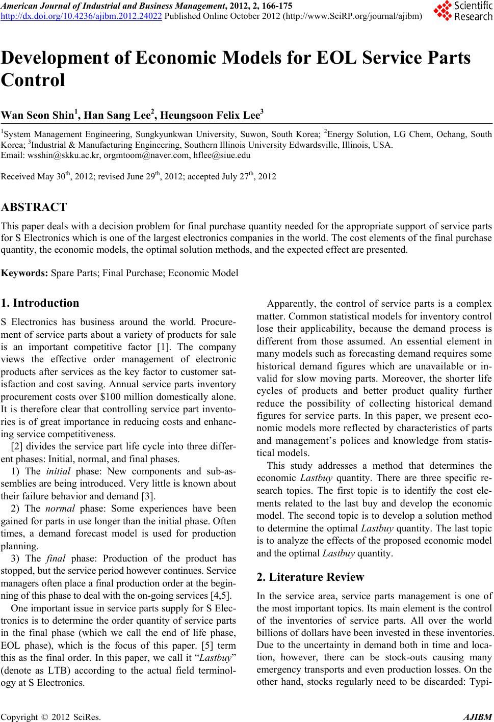American Journal of Industrial and Business Management, 2012, 2, 166-175