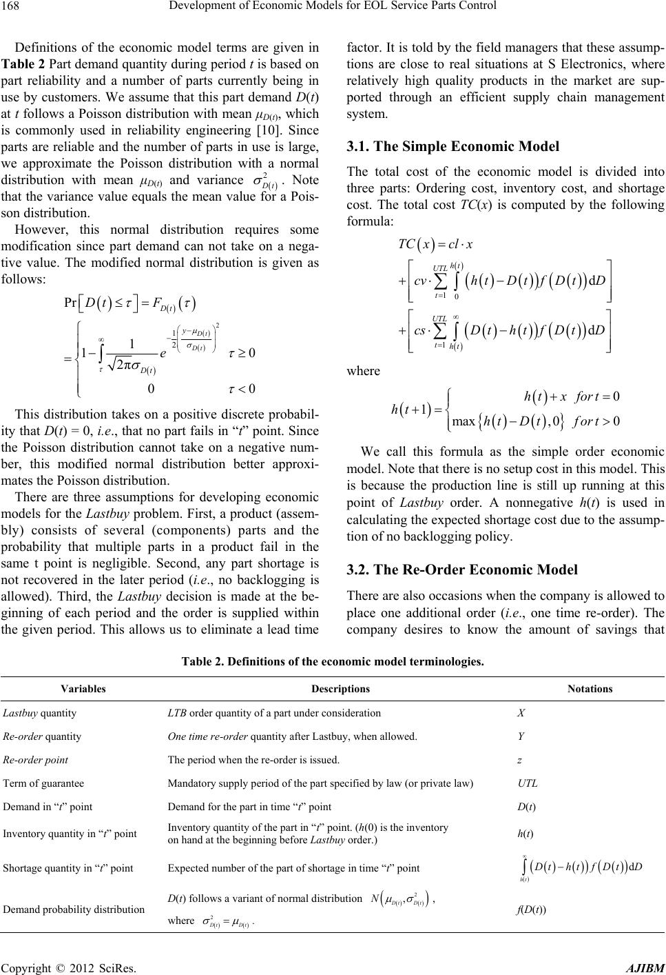 Keywords: Spare Parts; Final Purchase; Economic Model