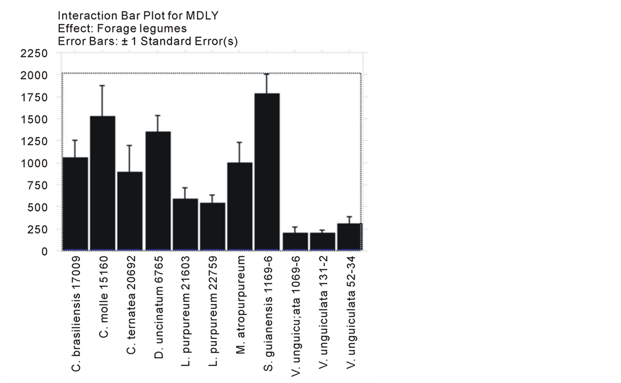 Figure 3. MDLY (kg/ha) of herbaceous forage legumes.