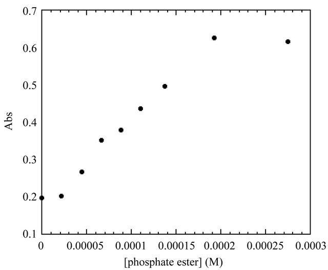 Furthermore, in the case of compound 1c, we recorded the UV-vis spectra in chloroform at 25˚C and a fixed concentration of MWCNT (2 × 10−6 g/mL) in the pre- sence of varying amounts of phosphate ester (0 - 3 × 10−4