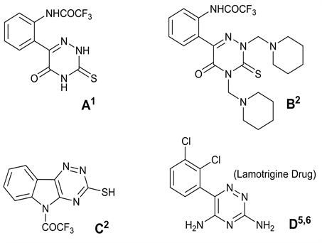 Fluorine substituted 6-(2’-aminophenyl)-3-thioxo-1,2,4-triazin-5-one derivatives exhibit a wide spectrum of the medicinal, pharmacological and biological fields such as anti-HIV [1] , anti-cancer [2] , and antimicrobial [3] [4] activity. On the other hand, fluorinated 6-aryl-3,5-diamino-1,2,4-triazines is used as lamotrigine drugs especially as ati-inflammatory agents [5] [6] . In addition, introduction fluorine atoms to functionally 1,2,4-triazines often improve and enhance that physical, chemical and biological properties [7] [8] [9] [10] (Figure 1). Based upon these observations and in view of our previous work [6] the objective of this work is to