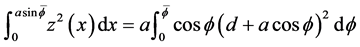 With this setting established, we are able to proceed to the configurations of interest. Assume that the ball floats centrally, and so that the center of the ball is at a height d. Thus the boundary of the ball can be described by its azimuthal angle