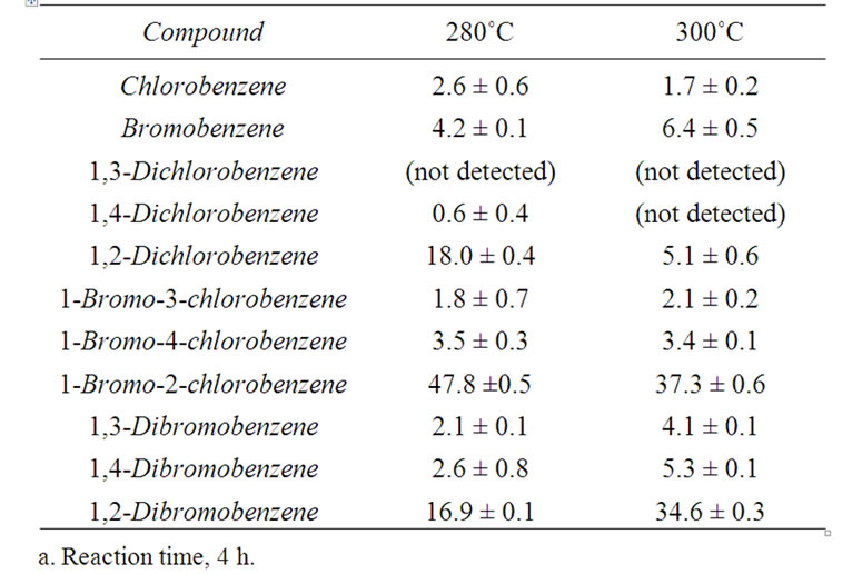 Table 1. Relative mol% of halobenzenes at 280˚C and 300˚C, respectivelya.