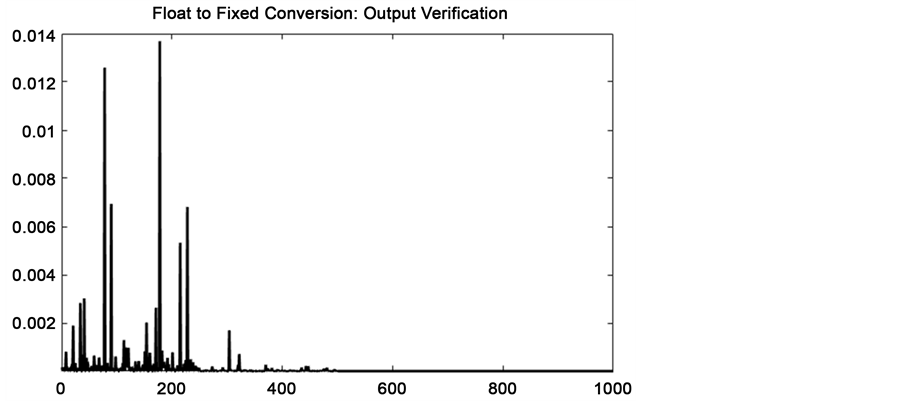 using OCTAVE. If the results are correct and error falls within the acceptable range, synthesis flow will be the next level of operation. Based on user input parameters, the system will create Verilog HDL code, test bench, and verification results by running a batch file. After generating Verilog HDL RTL code and running the desired number of test vectors, the conversion system needs to compare these test vector results from Design Under Test (DUT) and expected golden values. The conversion tool generates an OCTAVE file to see the error values. The conversion system can generate any number of test vectors based on the computer hardware, such as CPU speed and memory size. The suggested value can be anywhere between 100 and 1,000,000 test vectors. After running the test bench files using Iverilog, the results are compared using OCTAVE file. The OCTAVE-generated test vector comparisons and error plotting are shown in Figure 6 for fixed-to-float and float-to-fixed verifications.
